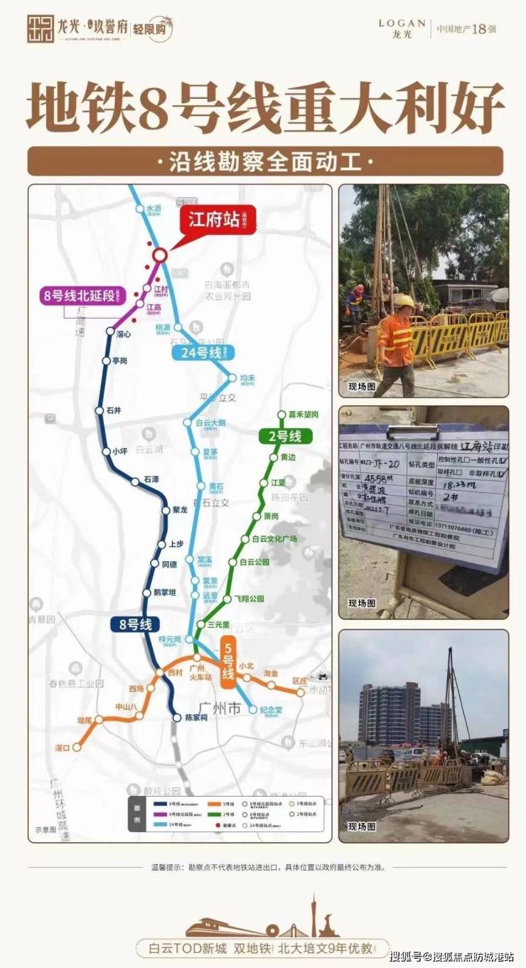双地铁上盖:紧邻8号线北延线(在建)和24号线(规划中),未来将形成双地铁换乘站,30分钟直达白云CBD,45分钟通达天河CBD。