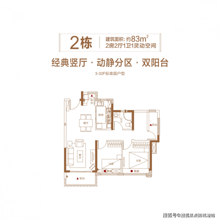 建筑面积约83㎡(2房2厅1卫)