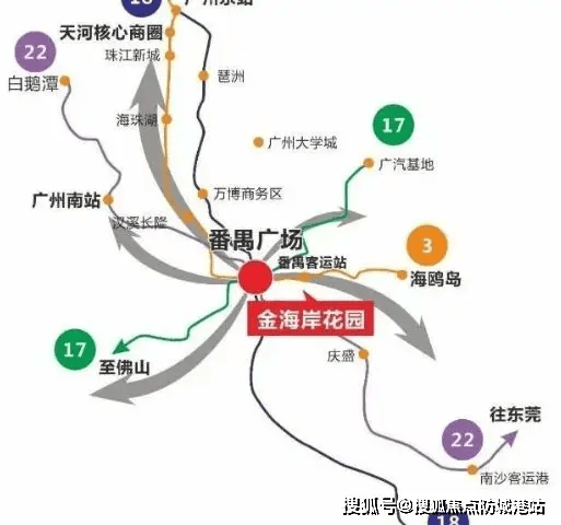 金海岸花园距番禺广场地铁站仅800米(直线距离),3/18/22号线三轨交汇,可直达珠江新城、琶洲、南沙自贸区。实测通勤时间: