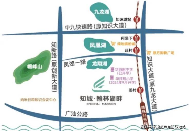 尽管知城翰林湖畔距离最近的地铁站(14号线知识城支线旺村站)大约1.3公里,步行可能不太方便,但自驾出行非常便利。通过创新大道和永九快速路可以快速到达科学城及天河地区,此外,项目毗邻花莞高速知识城出口,连通广河高速、华南快速干线等主要道路。