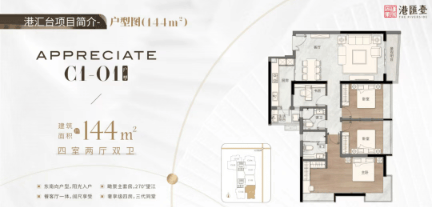 C1栋:主推144㎡四房两厅二卫、117㎡三房两厅两卫及127㎡三房两厅两卫。