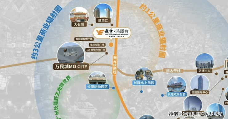 A: 项目一路之隔即是万民城、105新地购物广场,楼下自带商业街市,未来将引入便利店、咖啡店等业态。同时,项目3公里内辐射万博CBD高端商圈,天河城、万达广场、四海城等举步即达,商业氛围浓厚。