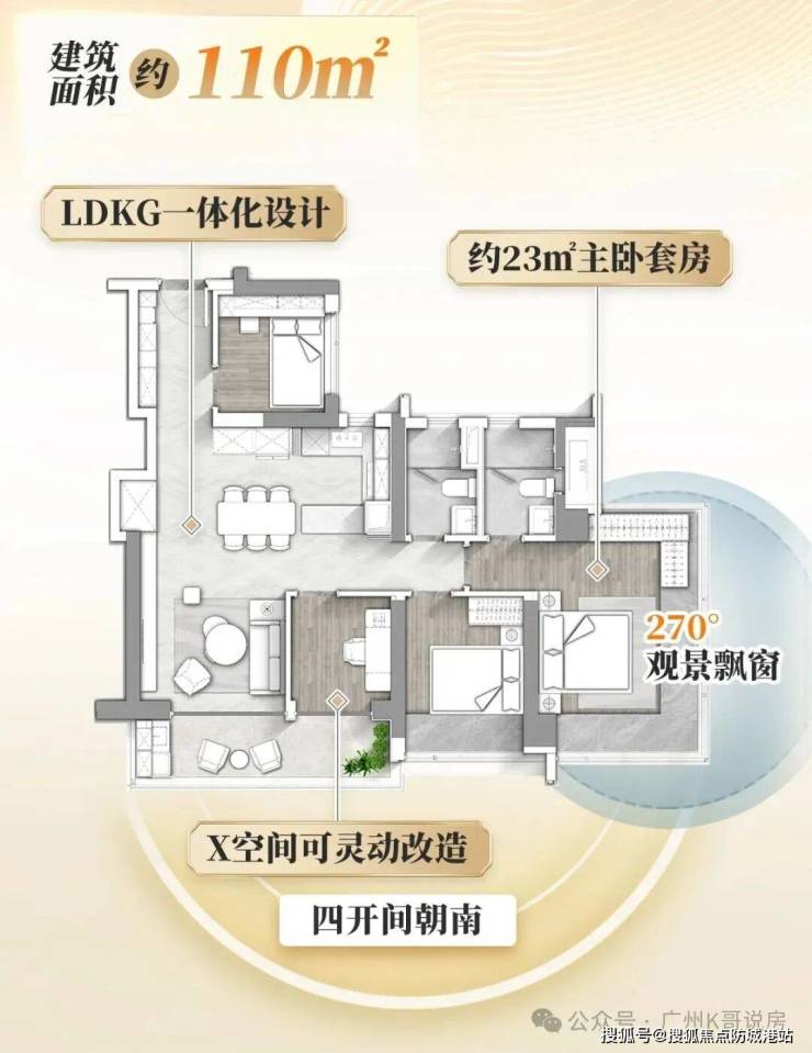 项目主推110-300㎡全四房户型,覆盖刚改至顶豪需求,所有户型多开间朝南,LDKG一体化设计提升空间利用率。180㎡户型公共空间超80㎡,可灵活改造为三至五房;215㎡户型搭配9.6米南向阳台,270°观景飘窗;300㎡大平层三梯两户,双套房设计俯瞰长隆景观。户型兼顾尺度与实用性,飘窗可拓展使用面积,满足不同家庭阶段居住需求。