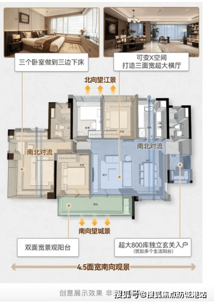越秀珠实·皓悦滨江共规划两栋楼,分别为1号楼(30层)和2号楼(33层),两梯五户的设计,提供约300套房源。所有户型均为全南向设计,确保每一户都能享受充足的阳光照射。具体户型方面,82平方米三房两厅两卫户型,三个卧室均朝南,客厅和卧室分布在南侧,北侧为双卫和厨房,整体通风和采光良好。108平方米户型则通过打通次卧,可变身三面宽超级横厅,解锁接近20种生活方式表达。