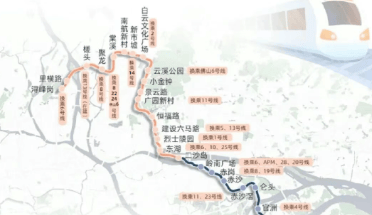 项目交通网络高度发达,立体出行体系已然成型。目前已运营的地铁2号线白云公园站距离约1公里,步行或骑行便捷可达。更值得关注的是,地铁12号线小金钟站距项目仅约300–400米,预计2026年开通后将显著提升通勤效率;此外,规划中的11号线大金钟站亦在建设中,未来形成双地铁交汇之势。地面交通方面,广园快速、环城高速、机场路、白云大道南等主干道环绕,无论是通往天河CBD、广州南站,还是白云国际机场,均能高效接驳,满足多元化出行需求。