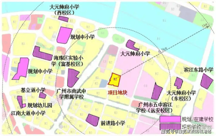 A: 项目周边教育资源丰富,包括大元帅府小学、广州市第五中学等名校。但具体的招生范围和政策每年由教育部门划定,请以当年官方公布为准。