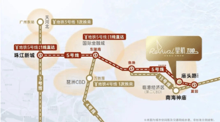 越秀滨江星航TOD地理位置得天独厚,坐落于老黄埔的心脏地带,紧邻地铁5号线庙头站上盖,距离仅约5米;同时,距离13号线南海神庙站C2出口也仅有约500米的距离。此外,社区附近还有BRT庙头站,直线距离约55米,为居民出行提供了极大的便利。通过这些交通线路,可以轻松直达珠江新城、天河等多个重要区域。