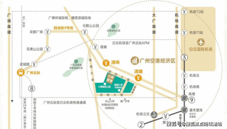 🚇花都·合和新城占据花都核心地段,交通优势极为显著。项目紧邻广州地铁 9 号线清塘站和青布站,双地铁环绕,让您轻松畅达广州各区。无论是前往市中心上班,还是去购物、娱乐,都能快速抵达,大大节省了出行时间和成本。同时,项目周边公交线路密集,多条主干道交汇,自驾出行也十分便捷,为您的出行提供了多样化的选择。
