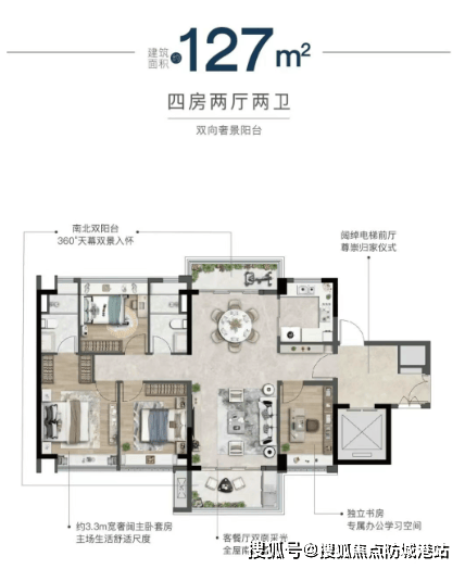 振业天成采用了围合式布局,楼间距达200米,保证了每户住宅的良好采光和视野。项目主推建面约104-168平方米的四房户型,两梯两户或两梯三户的设计降低了居住密度,提升了私密性和舒适度。这种设计非常适合追求高品质生活的改善型购房者。