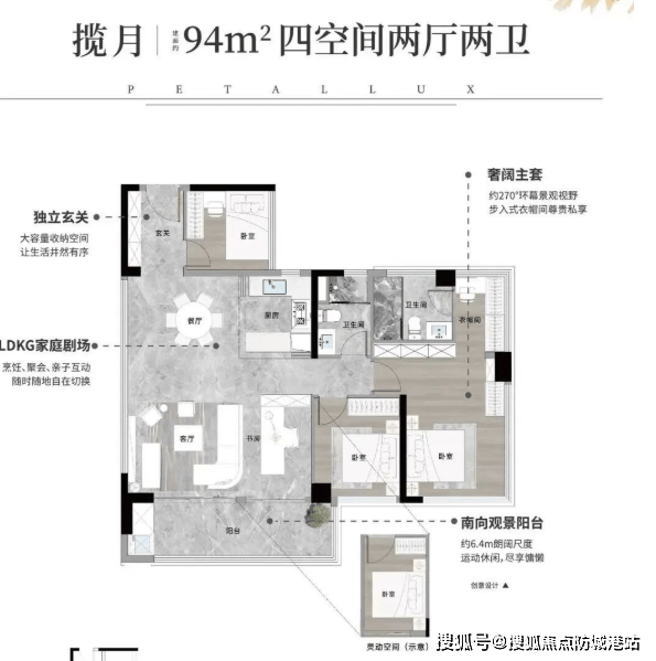 而108㎡四房户型,则堪称空间魔术师的杰作:7.2米超宽景观阳台揽入四季风景,30㎡主卧套房私密尊崇,整体实得面积约138㎡,媲美160㎡二手大宅的尺度感。无论是三代同堂还是二胎家庭,都能在此找到从容舒展的生活节奏。更重要的是,所有户型均为全南向设计,阳光全天候洒满家中,健康与舒适兼得。