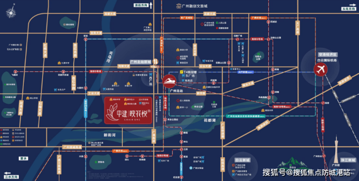 【中建·映花悦府】坐落在被誉为“广州后花园”的花都区,地处粤港澳大湾区核心枢纽之一的广州北站TOD旁。该项目定位为低密度高品质生态居住区,总建筑面积约为33万平方米,旨在打造一个集江景、学府于一体的轻奢生活圈。