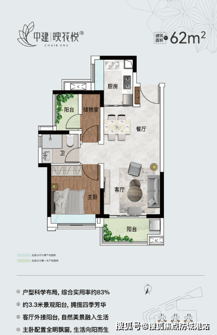 62㎡两房两厅一卫:科学布局,视野开阔,适合小家庭或首次置业者。
