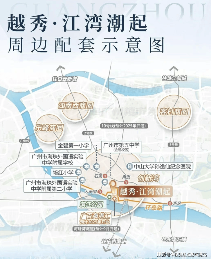 越秀江湾潮起虽不是传统意义上的【区府 + TOD】双核心模式,但具备类似的发展优势。项目所在的海珠区,区府的规划与发展对区域有着重要的引领作用,随着区府对区域基础设施建设、环境优化等方面的不断推进,项目将受益于整体区域的发展提升。