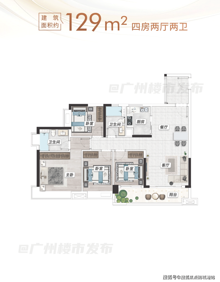 约129平四房户型,为改善型家庭量身打造,实现一步到位的居住需求。户型空间开阔,布局方正,四房设计可满足二胎家庭、三代同堂的居住需求,每个家庭成员都能拥有独立空间。主卧套间配备独立卫浴与衣帽间,提升居住私密性与尊贵感;其余卧室空间充足,可根据需求改造为儿童房、书房、老人房等,适配家庭不同阶段的需求,实用性极强。