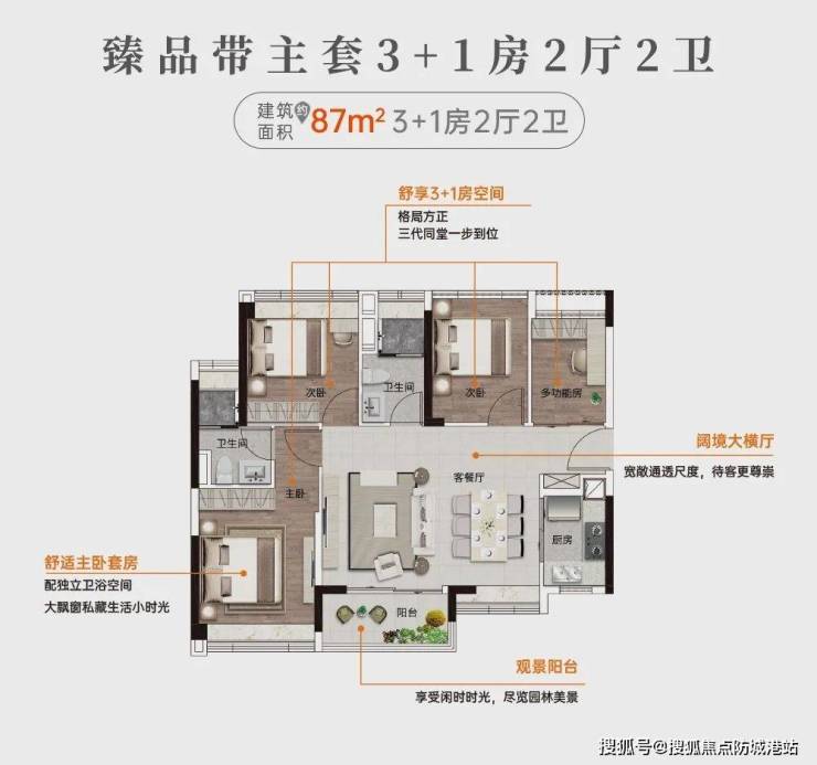 建面约87㎡高实用四房