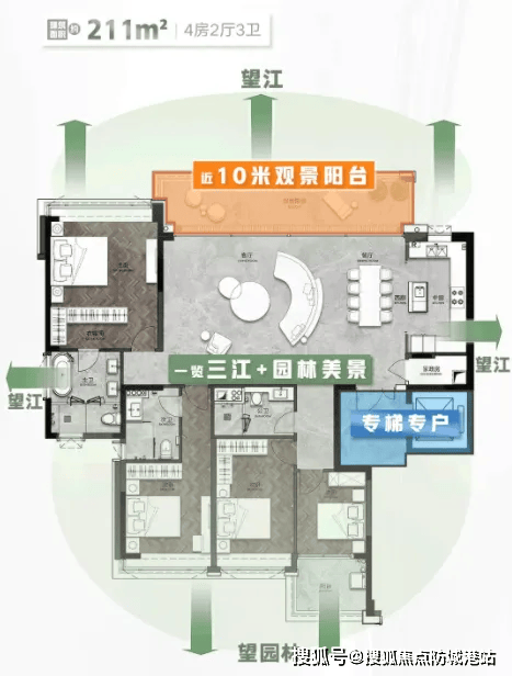 3. 211㎡四房三卫:总价888万起,高楼层双面望江