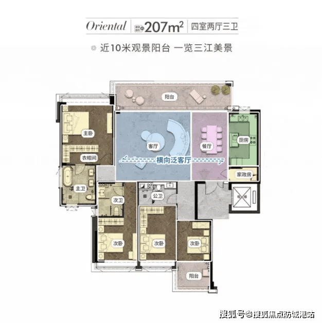 2. 207㎡四房三卫:总价1088万起,舒展空间适配二孩家庭
