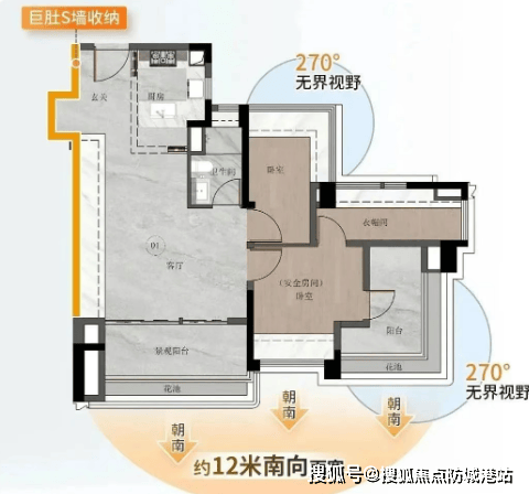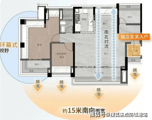 创新的户型设计:通过无边界飘窗、“V字”板楼设计,提升空间利用率与居住舒适度,使用率高达约85%。