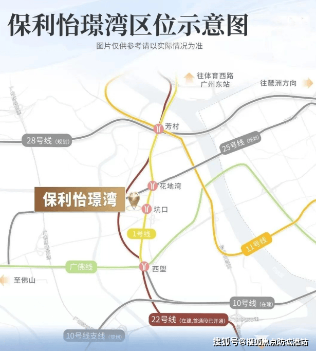地铁:距离1号线坑口站约500米,步行可达。通过芳村TOD换乘11号线环线和广佛线,通向珠江新城等地的交通便捷。
