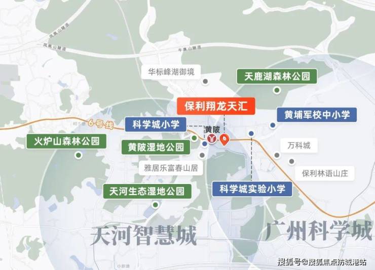 地理位置:保利翔龙天汇位于广州市黄埔区科学城广汕公路黄陂地铁口B出口,地处科学城和智慧城交汇处,与天河一路之隔。项目被誉为“天河东门户”,享受天河智慧城与科学城双城的发展红利。