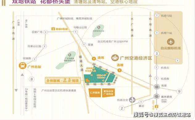 地铁9号线清塘站:项目正门200米,1站换乘3号线,2站直达白云国际机场。