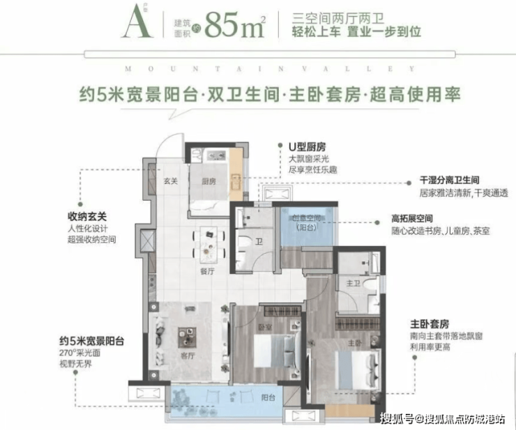 先跟大家说核心亮点:天地源伴山溪谷所有户型均为全南向,户户超5米大阳台,得房率超9成,对比同片区竞品(亚运城周边在售新房),同面积多1个房间,实用性拉满,刚需家庭、二胎家庭都能满足。