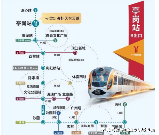 交通出行方面,项目拥有极为便捷的立体交通网络。其中,地铁出行尤为便捷,距离8号线亭岗站A出口实测仅300米,步行5分钟内即可抵达,B出口开通后距离将进一步缩短。8号线作为广州主城重要的地铁线路,设有8座换乘站,可换乘13条地铁线路,仅需一次换乘就能轻松抵达白云新城、珠江新城、金融城、琶洲等核心商业中心区,极大缩短通勤时间。