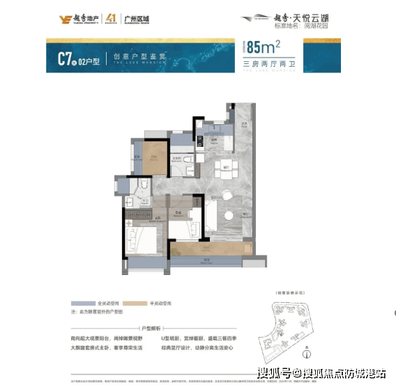 越秀天悦云湖三期在售户型涵盖84-133㎡三至四房,均为计容新规产品,无公摊设计让实际使用率超105%,空间利用率大幅提升,同时户型布局科学合理,兼顾舒适度与实用性,满足不同改善家庭的需求。其中,C7号楼作为三期首推楼栋,户型包括84㎡/85㎡三房两卫与95㎡四房两卫,两梯五户设计,目前可选楼层不多,意向购房者需抓紧抢购。