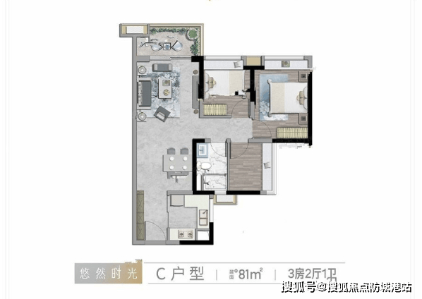 81㎡3 房 2 厅 1 卫是项目的刚需爆款户型,总价 218 万起,让年轻人在广州主城买房不再遥不可及。经典竖厅设计,实现动静分区,客厅、餐厅与卧室互不干扰,保证了居住的私密性和舒适度。