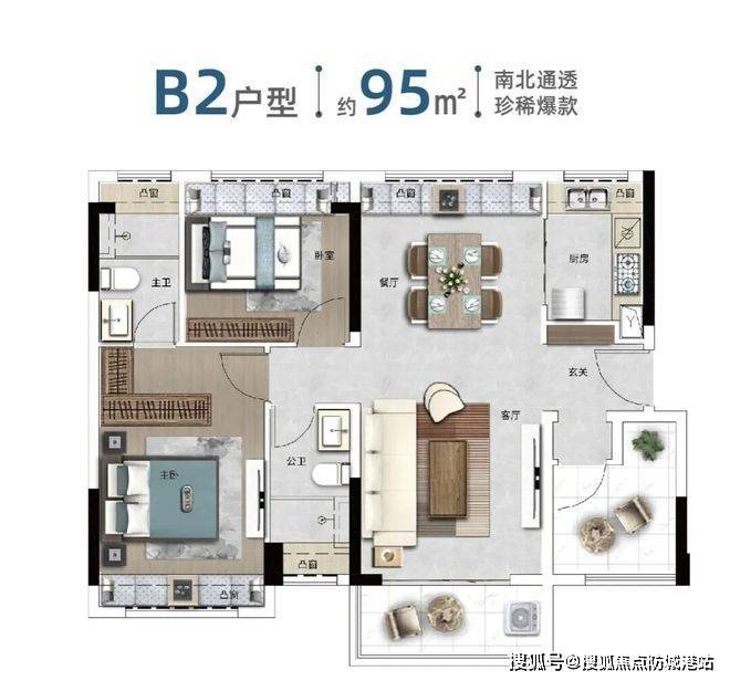 产品设计走高品质路线。85-108㎡三至四房全部南向,南北通透,采光通风优秀。客厅开阔,阳台视野无遮挡,主卧尺度合适,整体格局方正实用。户型注重功能性和舒适度,空间利用率高,飘窗、阳台放大室内尺度,实际居住感超出面积预期。适合小家庭首次改善,也能满足三代同堂的需求。