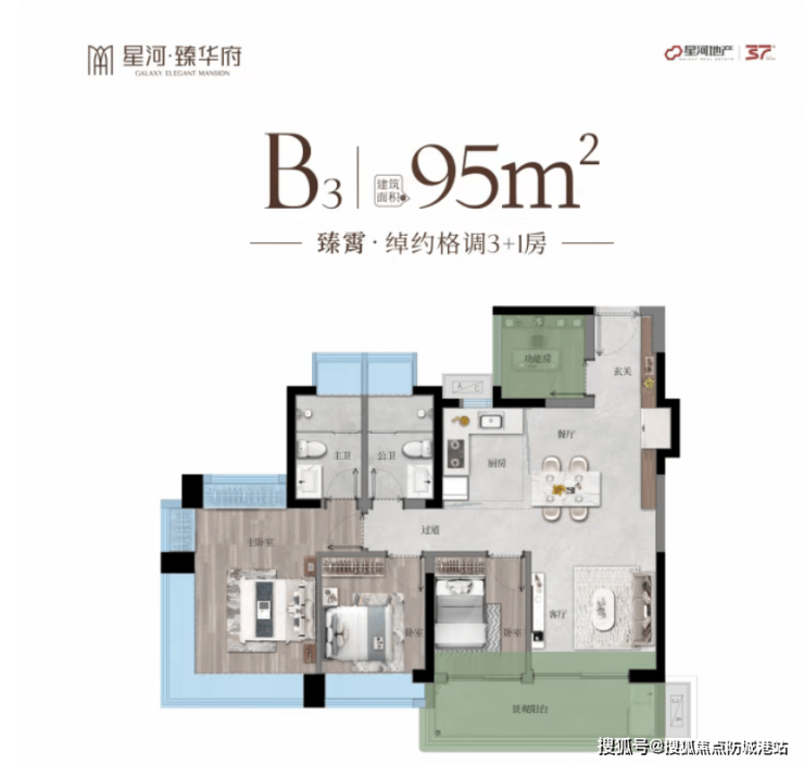 2. 建面约95㎡3+1房:灵动空间,多功能拓展