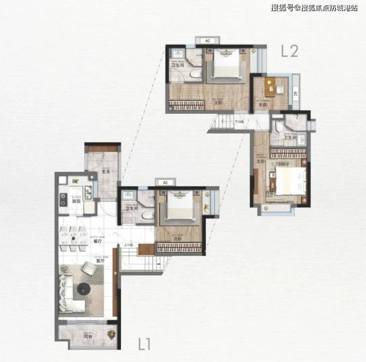 华润置地出手,自是翘楚,华润置地广州润府 推出的建面约 105~133㎡的复式产品,亮点颇多: