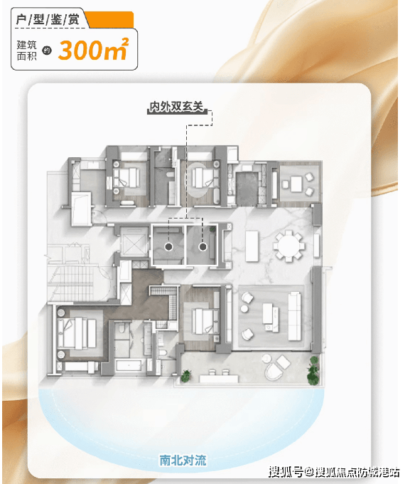 215-300㎡终极改善型:3 梯 2-3 户配置,带独立入户前室,约 9.6 米南向大景观阳台(215㎡)、双套房设计(300㎡),部分高层可俯瞰长隆乐园景观,尽显大宅尺度与尊贵感。售