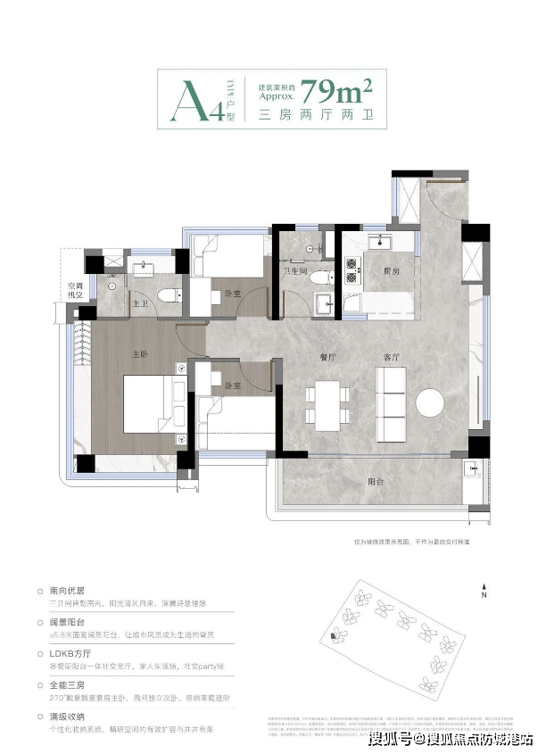 中建未来方洲推出多种户型,最小的79平方米户型为三房两卫设计,适合刚需购房者;最大的142平方米户型则为四房三卫设计,适合追求更高生活品质的家庭。所有户型均为南向设计,使用率超100%,并且配备有大面积阳台,能够享受无敌的中央园林或江景视野。特别是部分户型还采用了LDKB+X超级公区设计理念,增强了居住的空间感和舒适度。