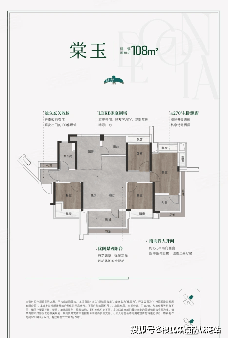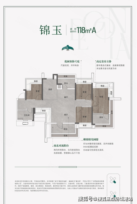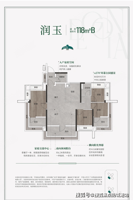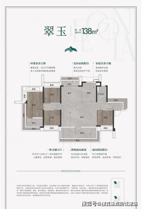 项目主打四房户型,建筑面积分别为108、118、138平方米,另有少量顶复户型。所有户型均采用全南向设计,确保充足的采光和通风效果。特别是其阳台占比可达25%,使得实际使用率高达130%,远超同类竞品。