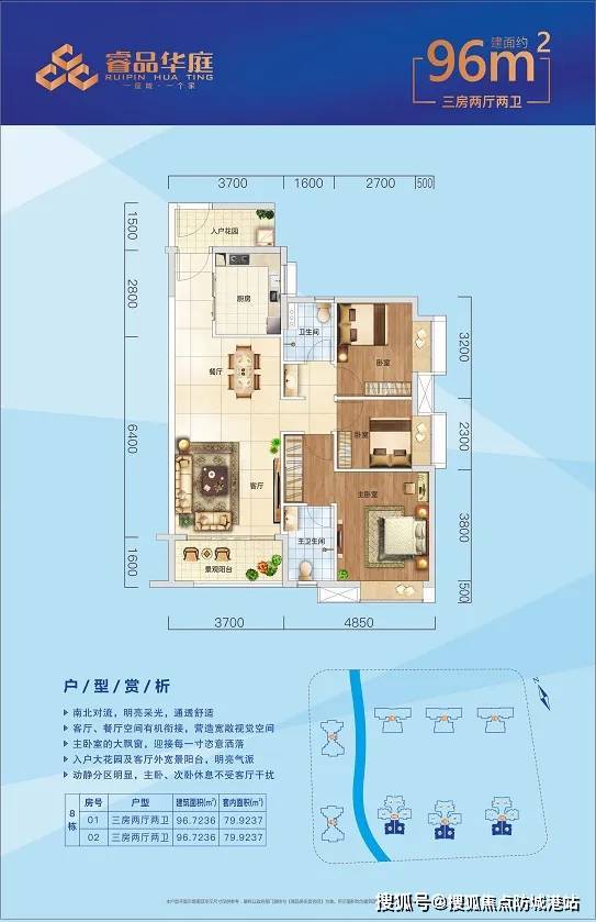 建面约84㎡~97㎡臻装美宅,户型实用,南北对流,户户均带入户花园,品质舒适。