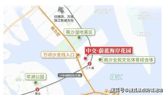 答:距在建 18 号线南延线二十涌站约 500 米,其中西线至中山市区预计 2027 年建成通车,东线至珠海拱北口岸计划 2030 年通车,未来通勤十分便捷。