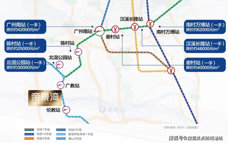 帝景湾紧邻佛山地铁3号线伦教站,已通车运行,两站即可换乘广州地铁7号线,仅需七站即可抵达广州南站,轻松享受广佛半小时生活圈的便利。相较于广州市区高昂的房价,帝景湾的价格仅为广州南站区域的三分之一,性价比极高。