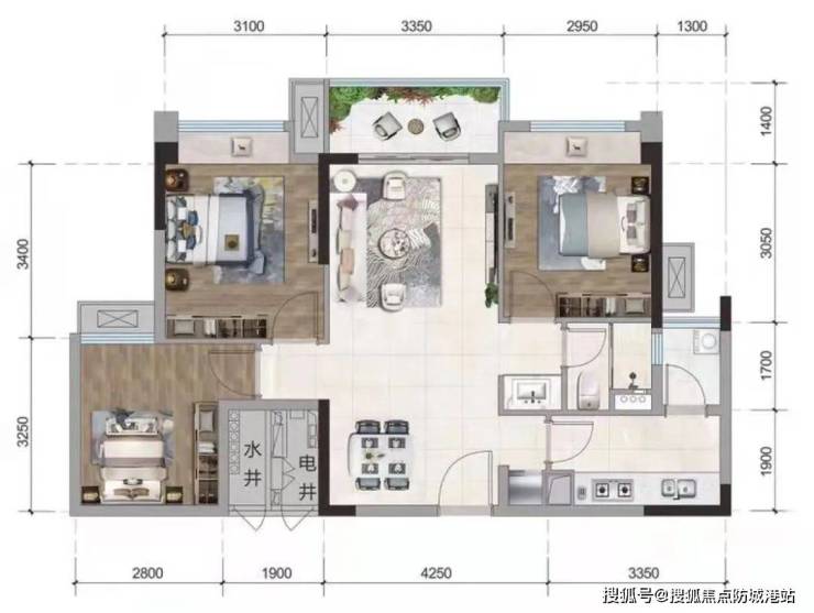 95㎡三房:空间布局合理,适合小家庭。