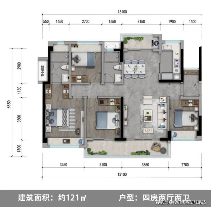 121-169㎡四房:宽敞明亮,满足大家庭需求。