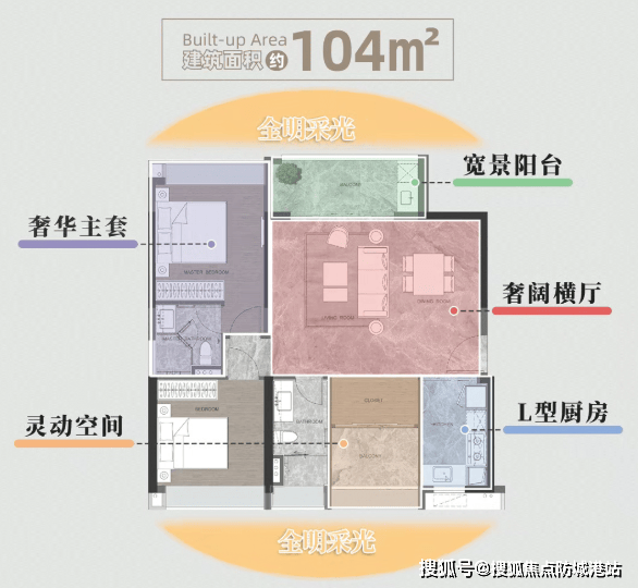 项目在售户型面积段为93至132平方米,涵盖三房至四房的主流改善需求。得益于30度的楼体扭转设计,所有户型均实现了极佳的采光与通风效果。尤其是北向户型,凭借无遮挡的视野优势,将广州塔的雄姿与珠江的秀色毫无保留地纳入室内。宽敞的楼间距让每一户都能享受到充足的日照,巨幕玻璃窗则将室外的美景无限延伸入室,实现了室内外的完美交融。