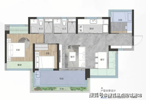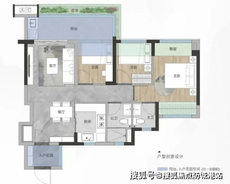 🏠78㎡三房两卫:独立入户花园,约5.5m宽幕阳台,主卧套房式设计,双飘窗揽景。