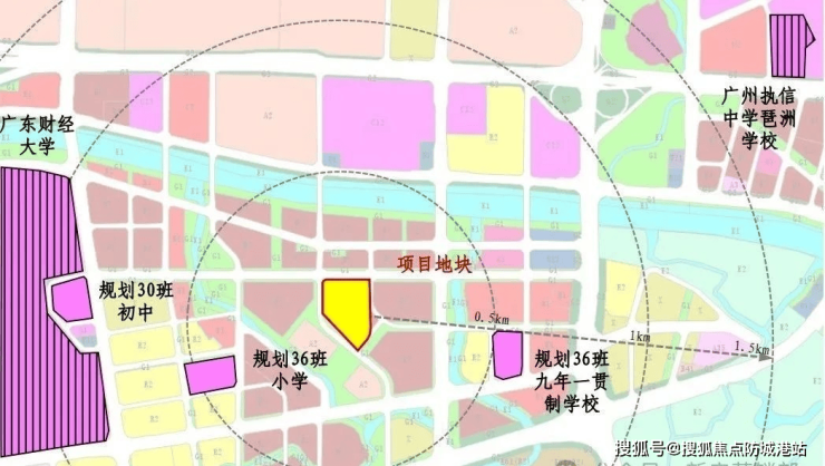 该项目周边教育资源充沛,500米范围内设有由广州五中领办的36班九年一贯制学校,为区内家庭提供了优质的公办教育选择。此外,东南侧还将建设一所国际私立学校,以满足不同家庭对教育多样性的需求。