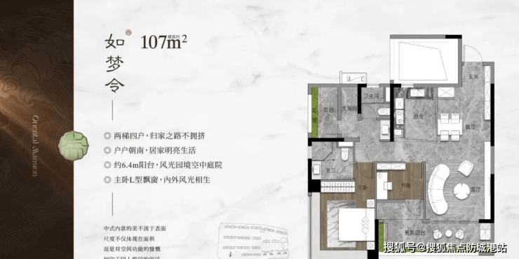 户型设计:89㎡三房实现“三开间朝南+主卧套房”,143㎡四房配备双主卧+8.5米L型景观阳台,270°环幕江景视野;
