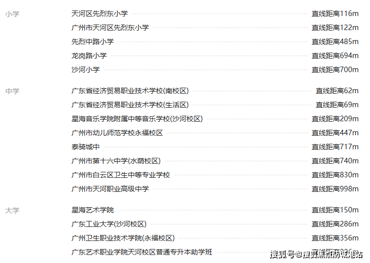 以及华南师范大学附属天河实验学校,作为天河教育集团校,其中考均分712分,毕业生升入华附高中部的比例超过15%。距离项目仅1.2公里,骑行8分钟即到。