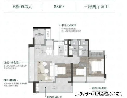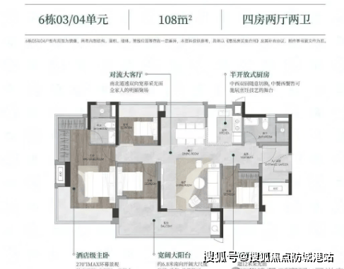 项目主打建面约82-141平方米的三至四房单位,全部采用新规设计,注重采光和空间利用率。全南向布局使得每个房间都能享受充足的阳光,阳台尺寸较大,如88平方米户型阳台开间约6.2米,105平方米户型约6.5米,125平方米户型更是达到了8.3米。所有户型均配备入户花园和超大飘窗,使用率较高。
