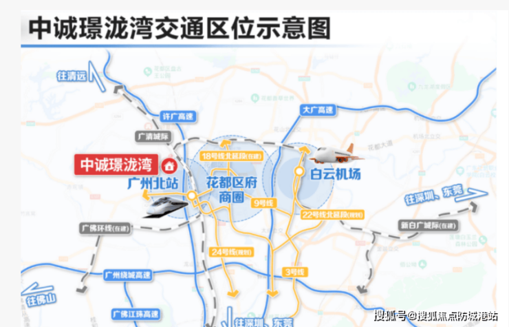 中诚璟珑湾位于广州市花都区迎宾大道旁,依托白云机场和广州北站的空铁联运枢纽优势,成为该区域的重要居住选择之一。项目不仅地理位置优越,而且在多维度交通网络的支持下,能够实现与广州市中心及其他大湾区城市的快速连接。此外,该项目所在的北站新城核区位,拥有约400亿的规划建设资金支持,致力于打造一个集免税店、高科技产业集群等多功能于一体的综合性新区。