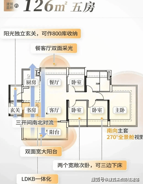 项目全盘 4 栋楼,共 530 户,均为 27 - 37F 高层,产品面积段涵盖建面约 83 - 126㎡,全南向四至五空间。建面约 83㎡的南向三房两卫,作为单边位,预测套内面积较大,且在新规基础上做了升级,实际居住体感更好,次卧尺度更大,能三边下床。99 平四房两卫户型,拥有 IMAX 宽景阳台、主卧三面环幕视野设计,可形成 “超聚厅”,满足休闲观景需求。109㎡四房两卫户型,南北对流,通风采光佳,两个次卧空间大,能三边下床,4.5 开间朝南,双面宽大阳台,客餐厅尺度宽敞,玄关处还有 800 库空间增强收纳。126㎡五房两卫户型,5.5 开间朝南,四间卧室朝南,南北对流,双面宽大阳台,客餐厅阔绰,同样有 800 库玄关,舒适度与功能性兼备。