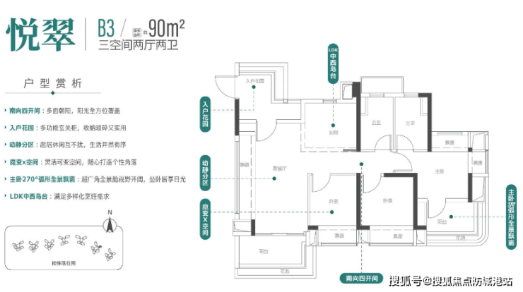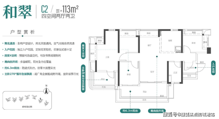 首推户型:约91-113㎡三四房,采用新规设计,使用率超100%。