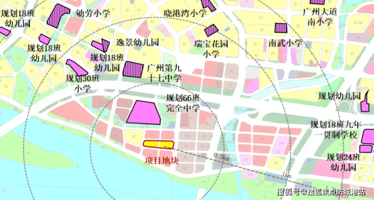 答:项目 500 米范围内规划有 66 班完全中学,1 千米内有广州第九十七中学、南武小学等学校,全龄段教育需求可基本覆盖。具体学区划分以教育局公示为准。
